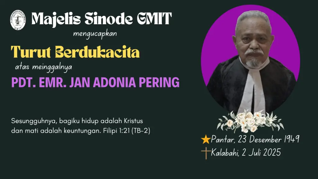 Majelis Sinode GMIT menyampaikan rasa hormat dan terima kasih yang sebesar-besarnya atas pengabdian dan teladan hidup Pdt. Jan Adonia Pering. Dalam duka, terselip rasa syukur karena telah memiliki seorang hamba Tuhan yang menghidupi Injil bukan hanya lewat kata, tetapi lewat laku dan dedikasi yang tak lekang oleh waktu.