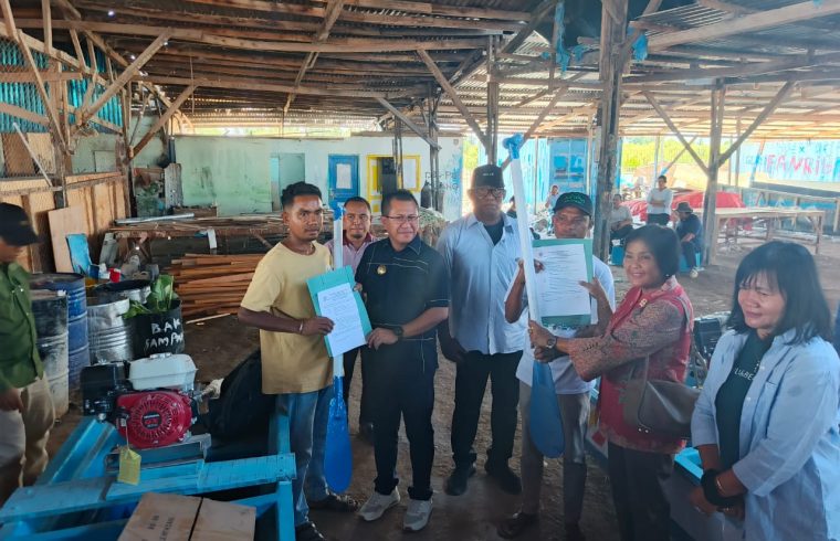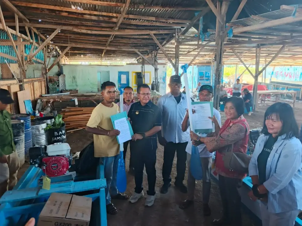 Kupang, www.sinodegmit.or.id, Dorong peningkatan ekonomi Nelayan, Bupati Kupang Yosef Lede menyerahkan Bantuan Alat Tangkap Ikan kepada Masyarakat di Galangan Kapal Pantai Manikin, Desa Mata Air, Kecamatan Kupang Tengah, Jumat (24/10/2025).