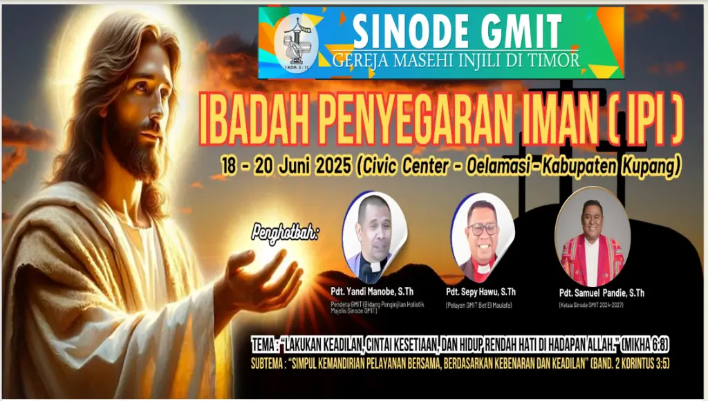 BERITA GMITJune 17, 2025Ibadah Penyegaran Iman Oelmasi-Kabupaten Kupang Share this:Post Related postsRekoleksi Klasis Semau di Loli:…Pdt. Emr. Hana Maria Jacoba…Tanah dan Air dalam Karya…Gereja Pertama di Pulau Ndao,…Turut Berdukacita: Pdt. Hana Maria…Peduli Lingkungan Hidup, Majelis Sinode…Bertepatan dengan HUT ke-50, Majelis…Refleksi 78 Tahun GMIT: Waktu,…ALLAH MEMELIHARA SEMUA CIPTAAN-NYA (MATIUS…Pdt. Semuel B. Pandie Terpilih…