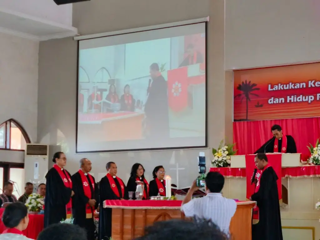 Kebaktian emeritasi dipimpin oleh Pdt. Zimrat M.S. Karmani sebagai liturgos dan Pdt. Lay Abdi K. Wenyi sebagai pengkhotbah.