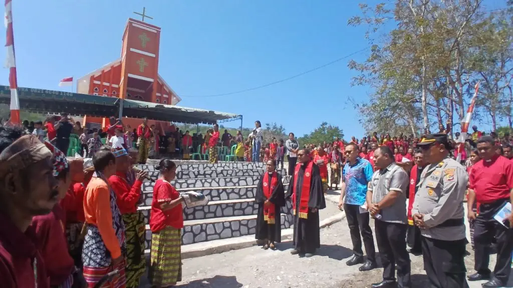 Ibadah pentahbisan dipimpin oleh Pdt. Yulius Mau Wadu. Acara diawali dengan natoni dan tarian penyambutan kepada para tamu. Selanjutnya Jemaat menyaksikan pembukaan selubung papan nama gereja, pelepasan burung merpati dan pengguntingan pita pada pintu masuk gedung gereja.
