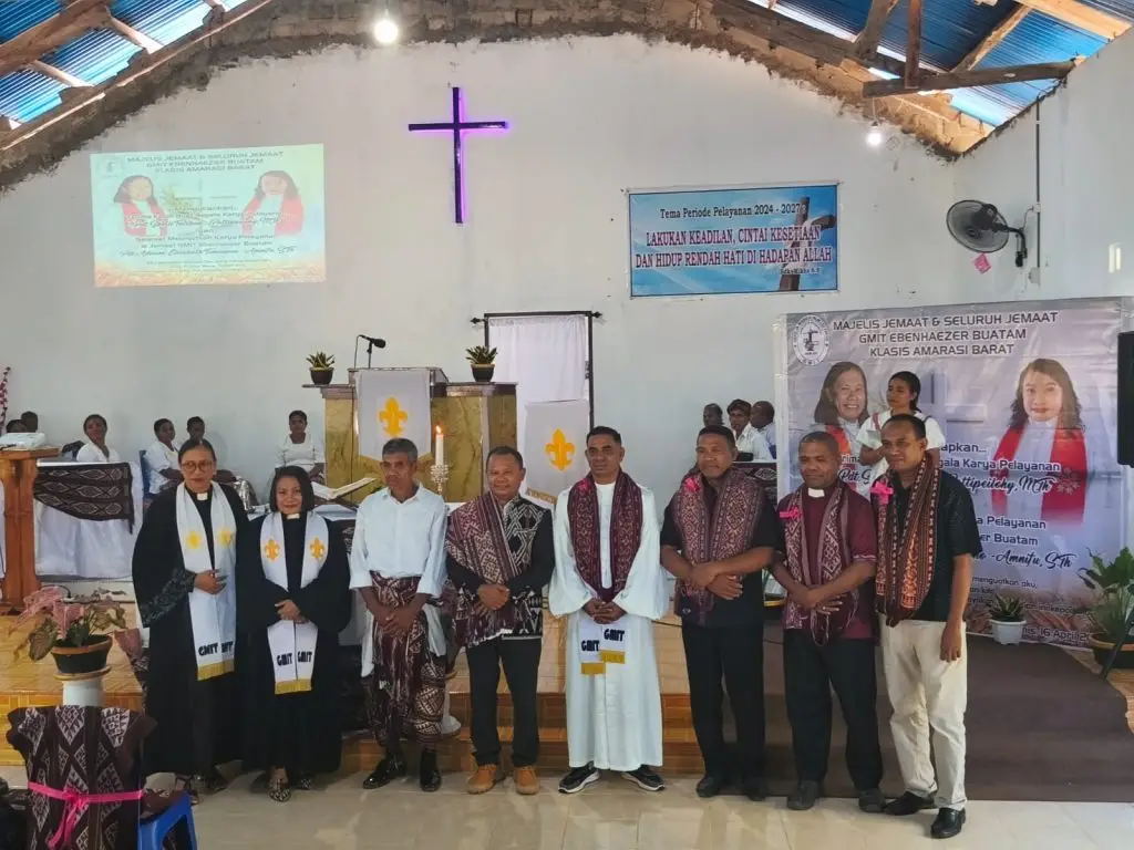 AMARASI,www.sinodegmit.or.id,– Setelah mendedikasikan diri selama 7 tahun 2 bulan, Pdt. Sherli Tatibun-Pattipeilohi mengakhiri masa tugas pelayanannya di Jemaat GMIT Ebenhaezer Buatam, Klasis Amarasi Barat. Ibadah pengutusan dan perhadapan yang berlangsung di jemaat ini menandai transisi kepemimpinan jemaat kepada Pdt. Adriani Elisabeth Timuneno-Amnifu yang dilaksanakan pada Kamis (16/4).